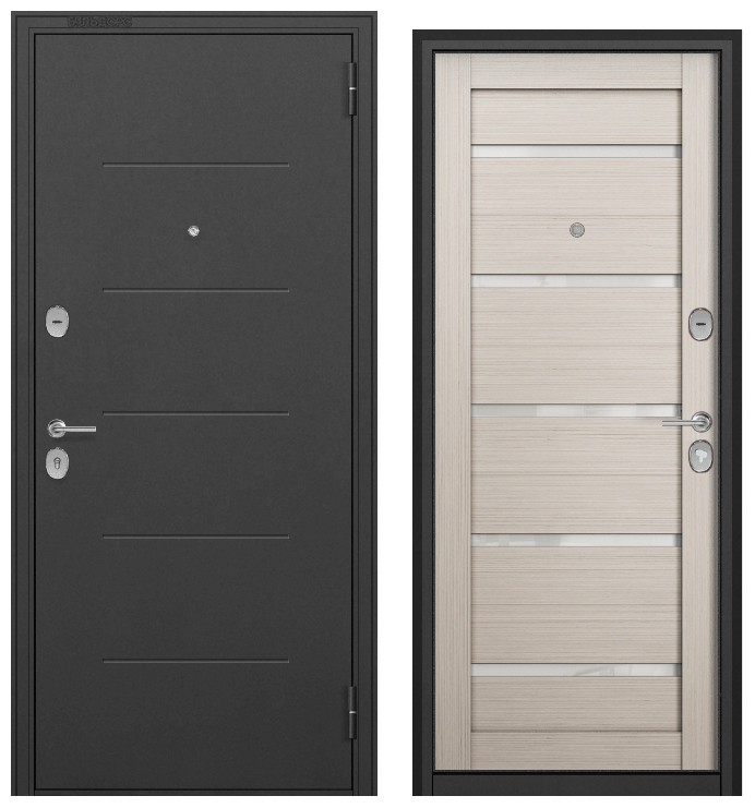 Бульдорс ФЭМЕЛИ ЭКО, РЛ-3, МДФ ларче бьянко СР-142 lakobel white, 2 замка (2050*960, левая, черный муар металлик, хром)