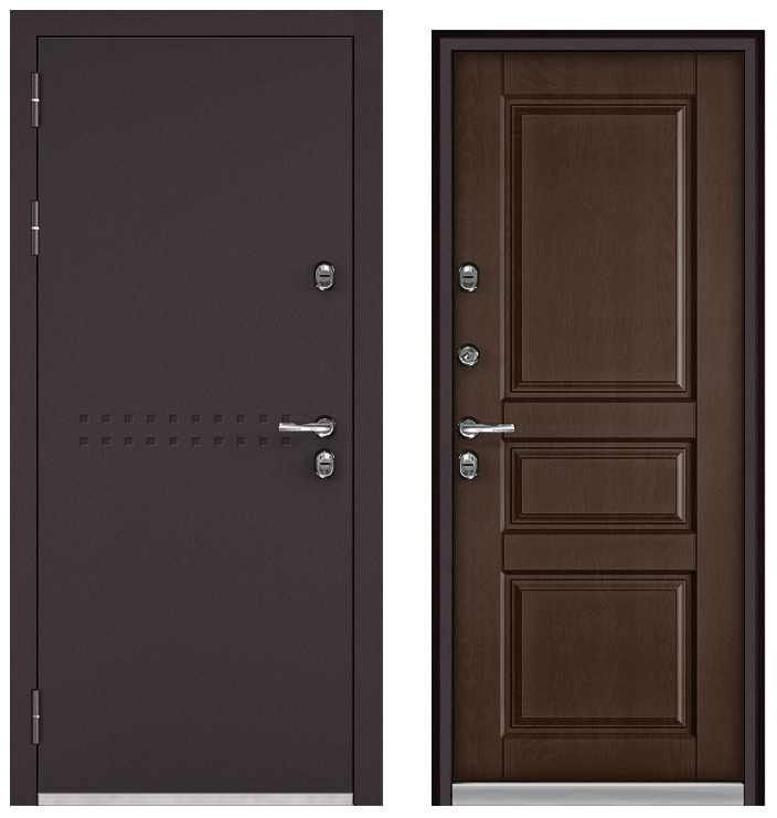 ТЕРМОРАЗРЫВ (СПЛИТ) MP, тисн.Р-4, МДФ дуб коньяк 10ТСД-2 (2050*960, правая, нержавеющий порог, букле шоколад, хром)