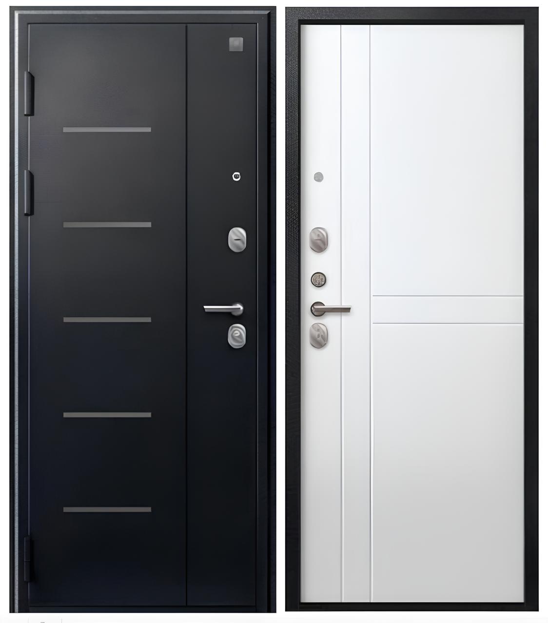 Дверь мет V-06, Черный муар, ПВХ Белый, хром