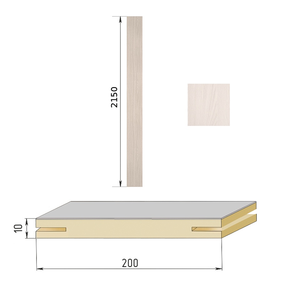 Добор телескопический (1шт*2,15м) для Бульдорс, МДФ шириной 200мм, покрытие ПВХ (ясень ривьера крем)