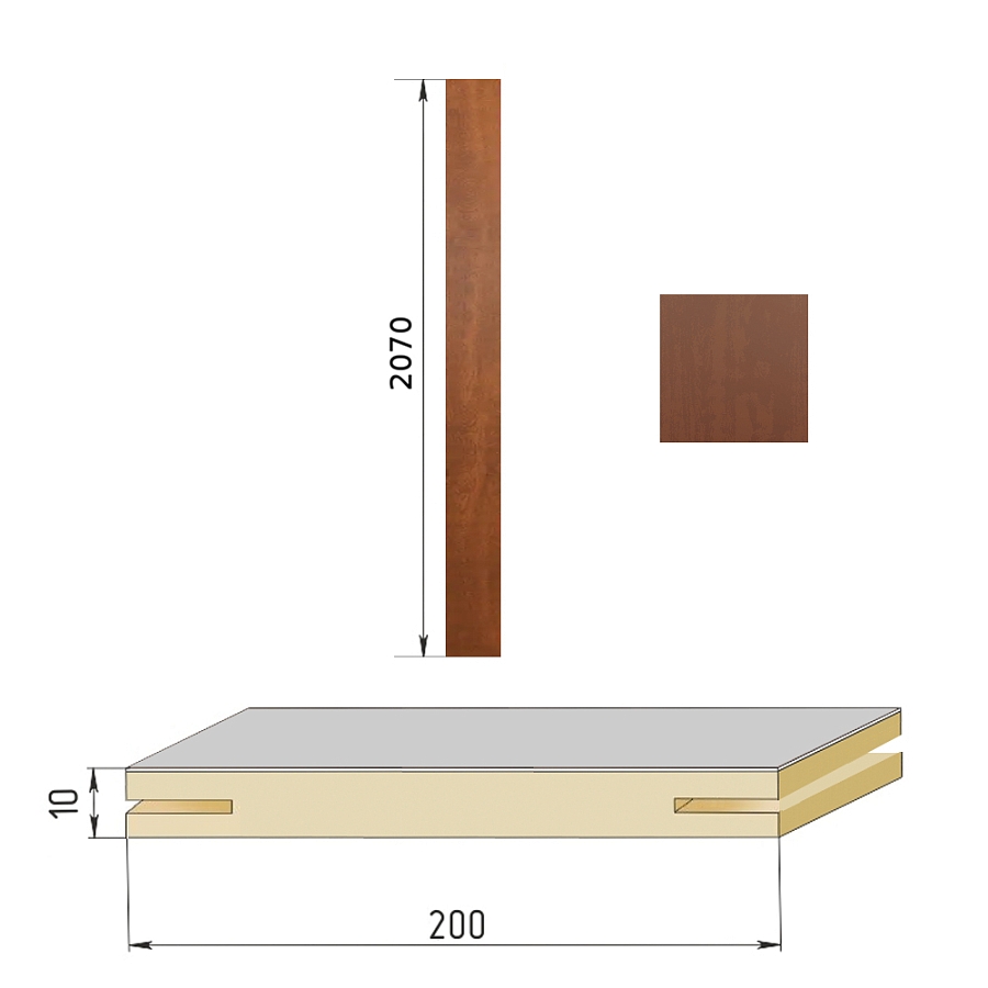 Добор телескопический (1шт* ДЛИНА 2,07м) для Бульдорс, МДФ шириной 200мм, покрытие ПВХ (орех грецкий)