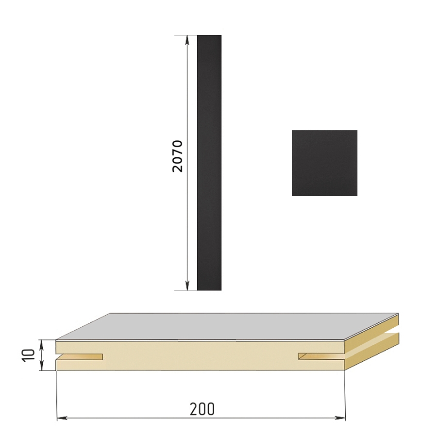 Добор телескопический (1шт* ДЛИНА 2,07м) для Бульдорс, МДФ шириной 200мм, покрытие ПВХ (черный матовый)