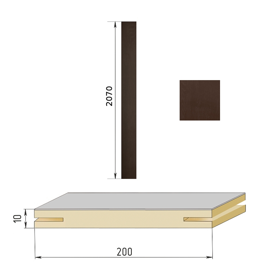 Добор телескопический (1шт* ДЛИНА 2,07м) для Бульдорс, МДФ шириной 200мм, покрытие ПВХ (венге)