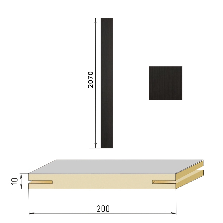 Добор телескопический (1шт* ДЛИНА 2,07м) для Бульдорс, МДФ шириной 200мм, покрытие ПВХ (венге)