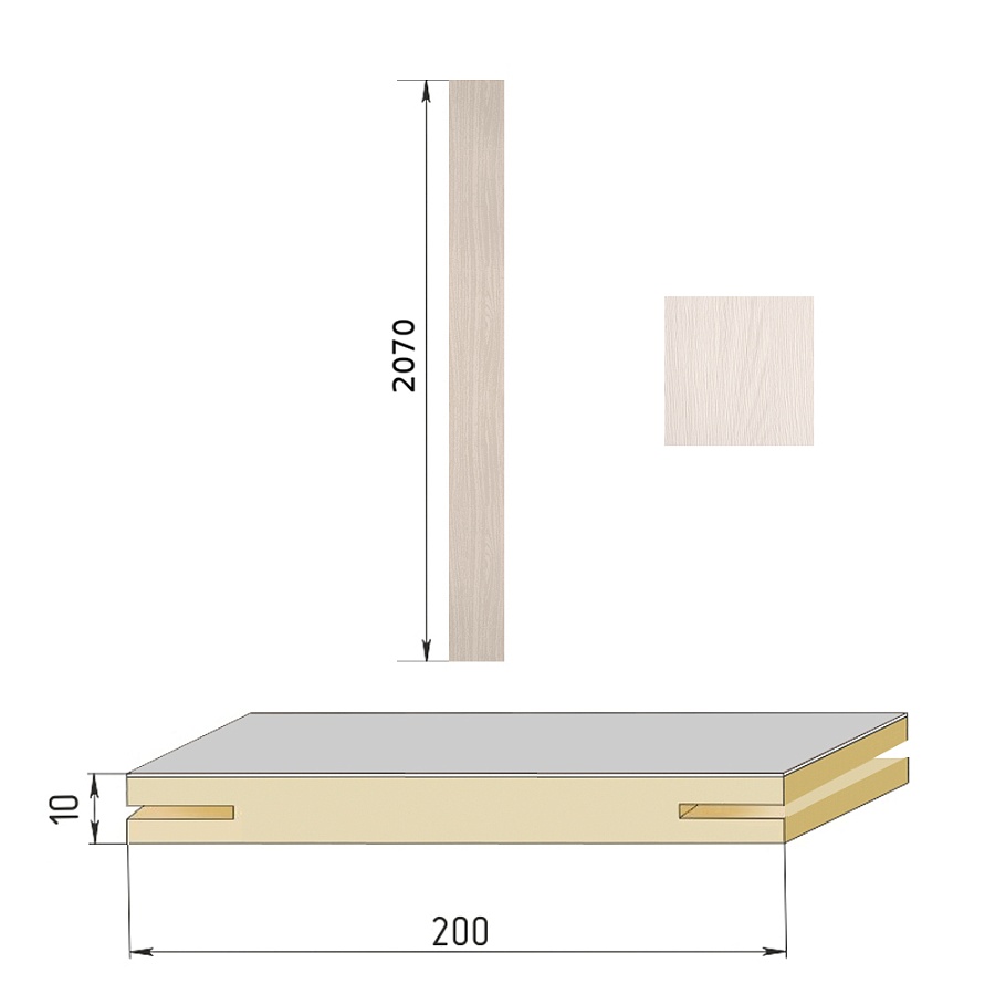 Добор телескопический (1шт* ДЛИНА 2,07м) для Бульдорс, МДФ шириной 200мм, покрытие ПВХ (ясень ривьера айс)