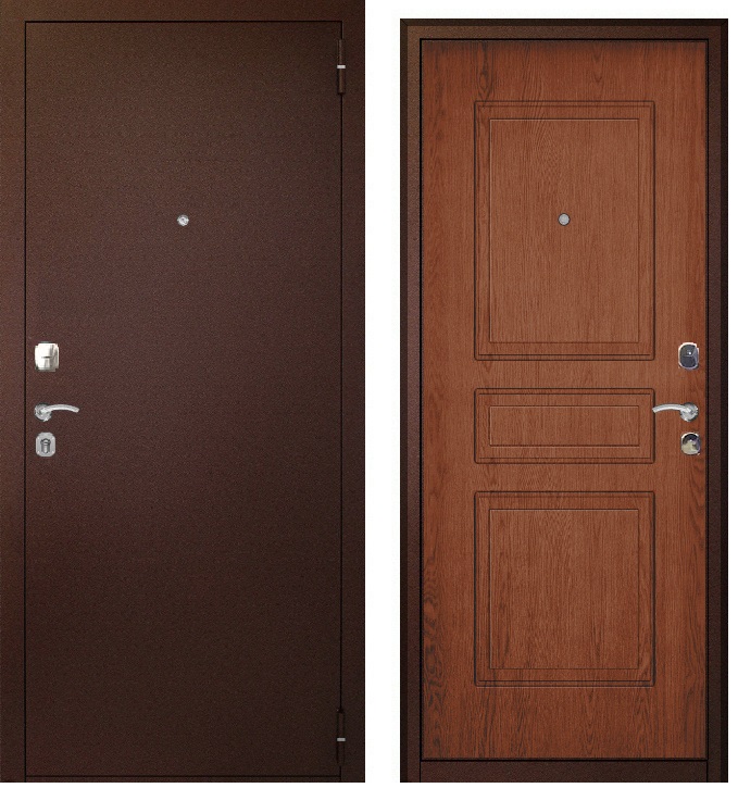 Тульские двери  А3 Монолит НОВ 70мм, хром (антик медный, МДФ Золотой дуб) (1950*860, R, правая)