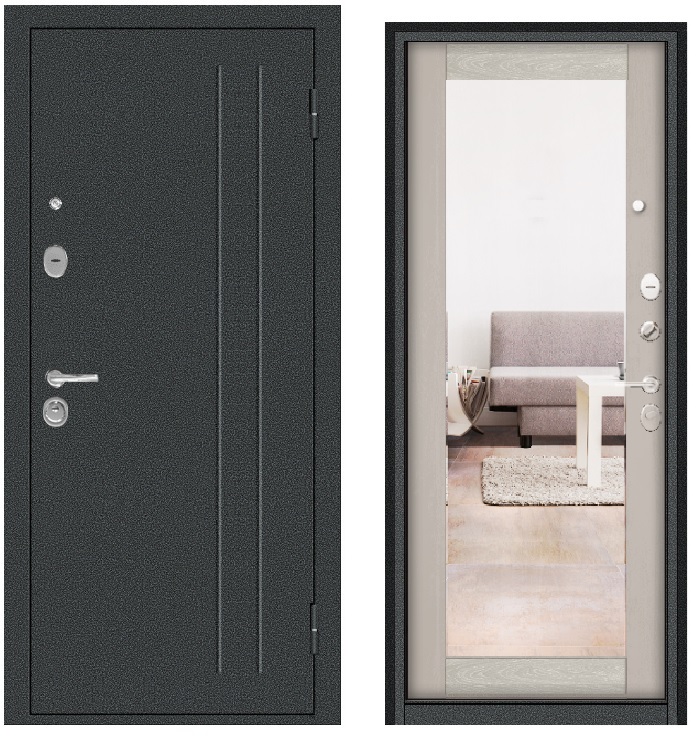 Тульские двери Б-33 ЗЕРКАЛО, Букле графит, Дуб дымчатый ,Царга, большое зеркало ,три контура, хром