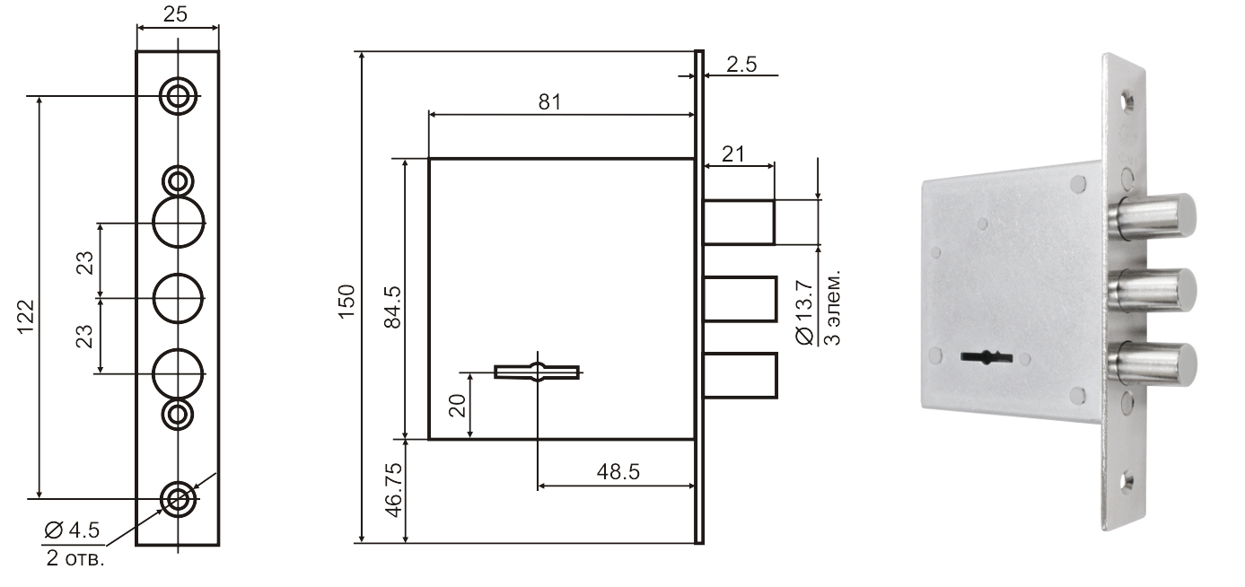 Удаление ключевого отверстия (Backset)     48,5 мм