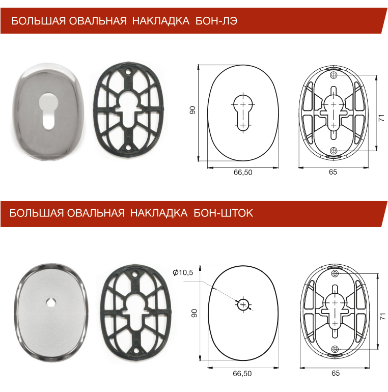 Накладка БОН овальная (90х65мм) (хром) (под шток)