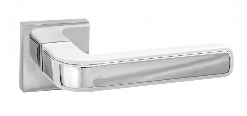 Дверная ручка Полента на квадратной розетке (белый супер матовый/хром блестящий, арт. INAL 539-03 MSW/CP)