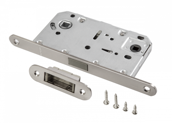 Планка из оцинкованной стали с устойчивым гальваническим покрытием, язычок магнитный в прочном полиамидном корпусе. Магнитный язычок обеспечивает бесшумное закрывание двери.