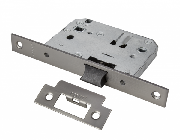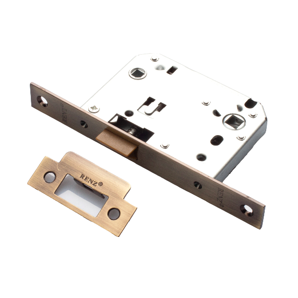 Защелка сантехническая РЕНЦ с корпусом из оцинкованной стали, межосевое расстояние 70 мм, бэксет 50 мм, снабжена отверстиями под стяжные винты.
