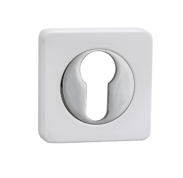 Накладка на цилиндр на квадратной розетке РЕНЦ (белый супер матовый/хром блестящий, арт. INET 02 MSW/CP)