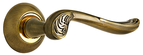 Дверная ручка Модена на круглой розетке (старая бронза/золото AB/GP)