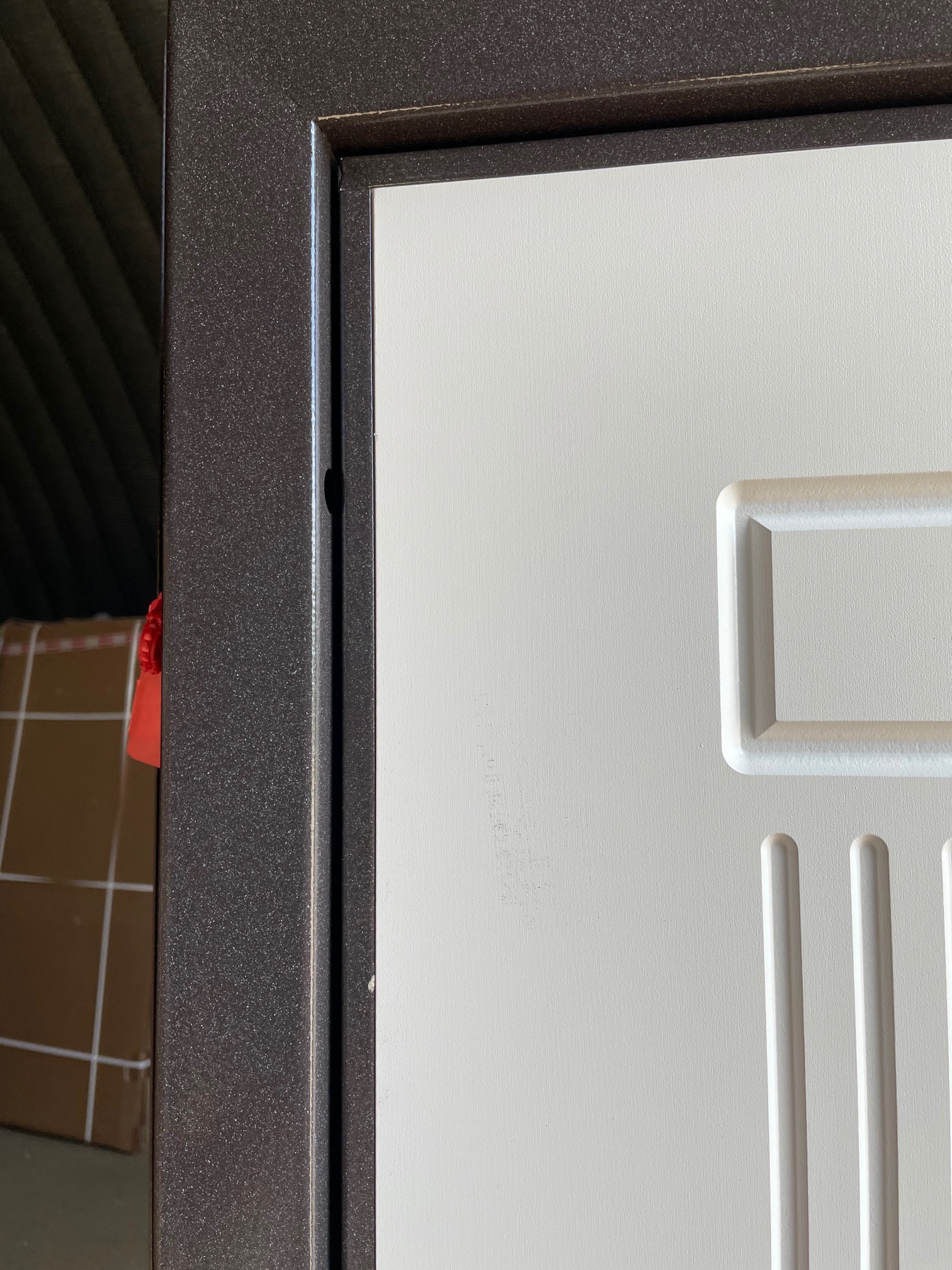 Повреждено покрытие ПВХ на внешней панеле МДФ. Из под панели выступила пена.